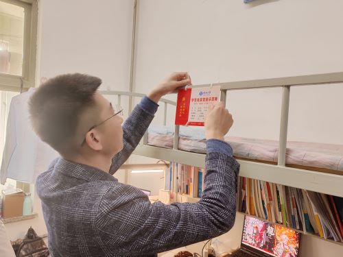 为充分发挥党员在文明宿舍、文明社区创建中的先锋模范和带头示范作用。近日,我院开展领雁工程党员示范岗宿舍挂牌活动,党委书记李栋、党委副书记何莉辉、团委书记武文硕及部分专职辅导员深入学生宿舍,为我院党员示范岗挂牌。