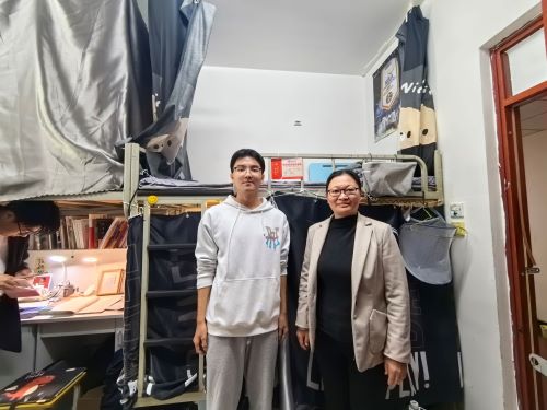党委副书记何莉辉与学生党员进行亲切交流,详细了解学生近期的学习生活情况,并指出,党员示范岗宿舍挂牌活动的开展,有助于学生党员亮身份、做表率、赛贡献、长才干,发挥先进学生模范带头作用,以身作则引导其他学生,促进学生德智体美劳全面发展。