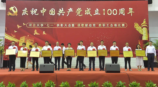 学校党委书记郭健在大会上致辞,号召全校教职员工发扬红色传统、传承红色基因,赓续共产党人精神血脉,在建校百年新的历史起点上,书写燕赵学府新的时代华章,以优异成绩庆祝中国共产党成立100周年。学校党委副书记、副校长王培光主持大会,党委副书记杨立海宣读了表彰决定,党委常委、纪委书记李治义,党委常委、副校长倪志宇分别为先进单位和个人颁奖。