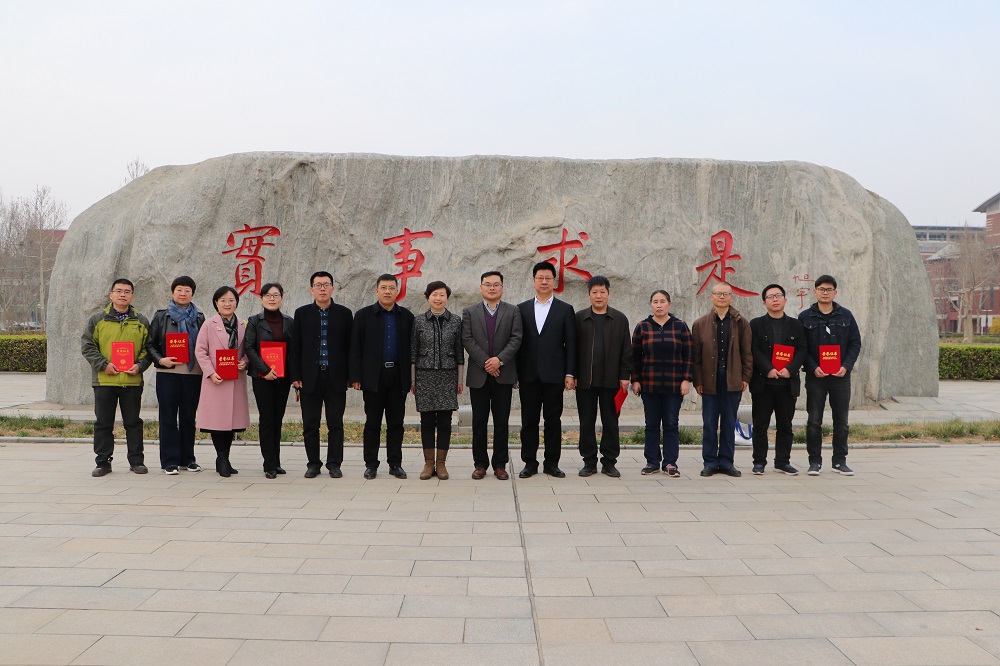 经个人申报、系所推荐,学院综合评审,李士忠、金剑、贾士彬被评为2020年度优秀教师,张梅被评为年度管理服务工作先进个人,户艳领被评为年度优秀辅导员。院长成新轩、党委书记金天星分别为优秀教师颁奖,工作人员为每位教师宣读颁奖词。会上,学院还对获得校级优秀课程思政的主讲人张晓华、徐树林,获得学校线上教学优秀课堂奖励的刘洋、田雅娟、刘超,获得学校教师教学创新大赛的吴宇、李浩然、张晓华和获得学校教学名师的尹成远等进行了表彰。