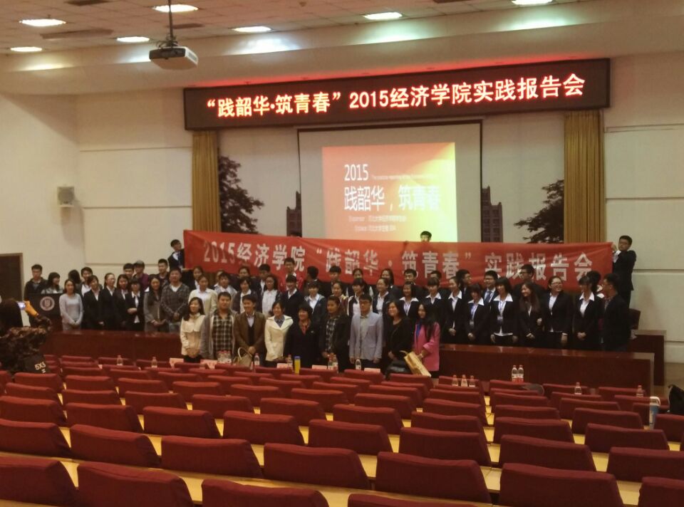 长久以来,河北大学经济学院积极响应国家“敢于实践”的工作理念,坚持并成功举办了多次“实践报告活动”,为河北大学的广大学子提供了亲身实践的机会,更为增强当代大学生的实践能力做出了贡献。本次实践报告会宣告了2015届实践报告会的圆满成功,也为下届实践活动打下了坚实的基础。未来,相信河北大学经济学院的暑期实践报告会定会精益求精,更上一层楼!