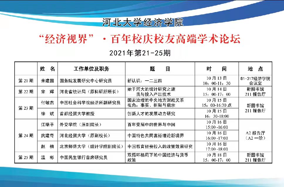 “经济视界”论坛2021年第21-25期