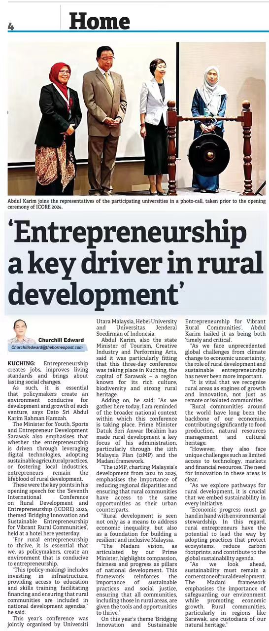 我院赴马来西亚古晋参加第七届农村发展和企业家精神(ICORE)学术研讨会