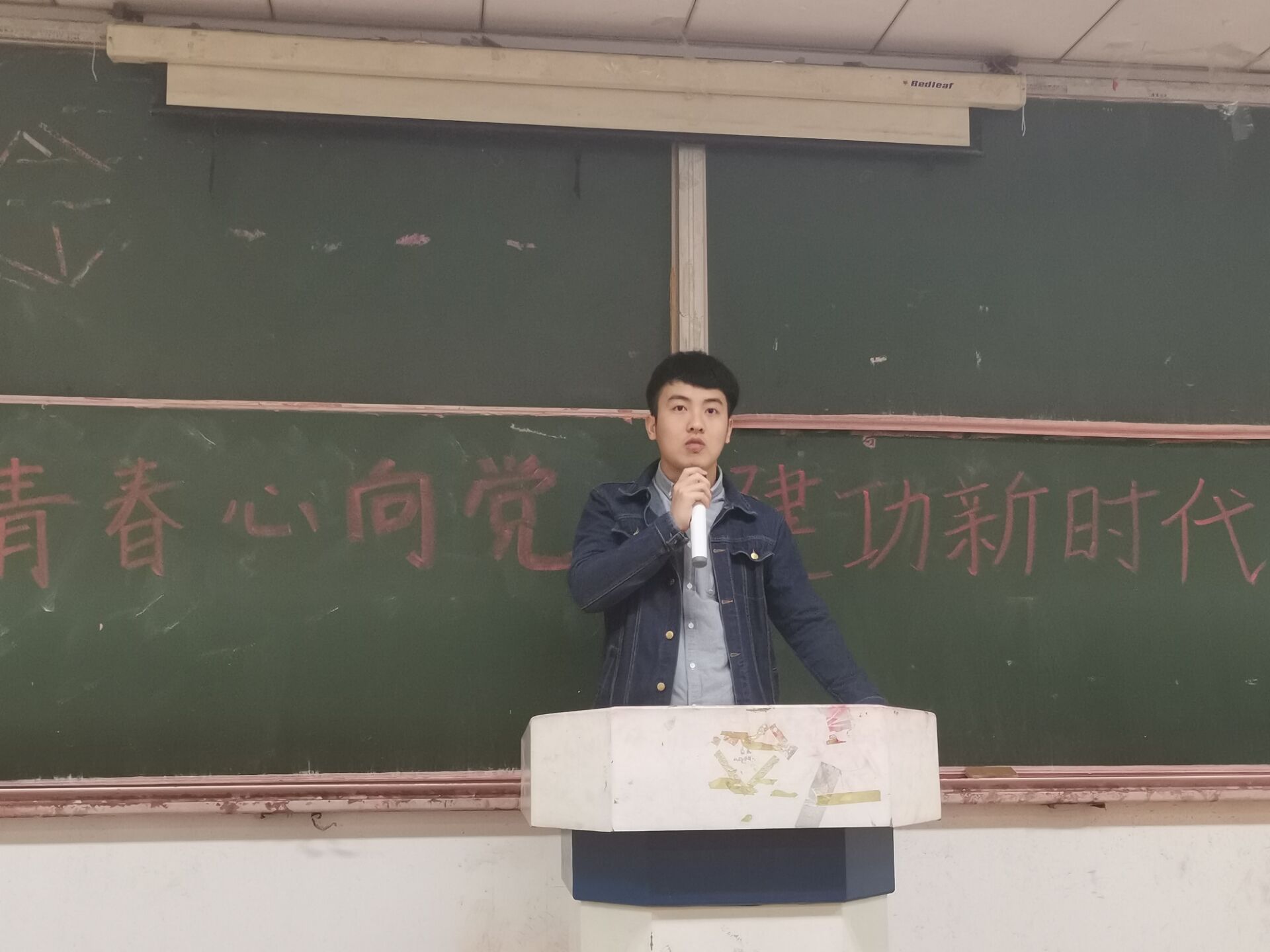 殷切希望,希望同学们坚定理想信念。网宣部部长徐泽超以“永远跟党走”为主题向同学们介绍了十九大党的基本方针。文艺部部长侯丹蕾举例百年前的五四运动令同学们深入了解了党的重要精神及不屈毅力。接着,生活部部长马小晗则在发言中缅怀先烈并对革命先辈致以崇高的敬意。经研所部长杨鑫用时光飞逝警戒新青年要不忘初心,牢记使命。外联部部长王宇朝用新的时代精神呼唤我们要有新的作为。学习部部长张光辉带来“青春向党,砥砺前行”的精彩发言。最后,学生会主席李政上台进行总结发言,强调新一代的青年要贯彻党一贯以来的精神作风,树立良好的心态及远大理想,志存高远,脚踏实地,勇做时代的弄潮儿。至此,此次活动在主持人的宣布声中圆满结束。